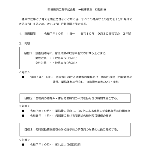 一般事業主行動計画を、次世代育成支援対策推進法第12条第1項に基づき届出をしました。